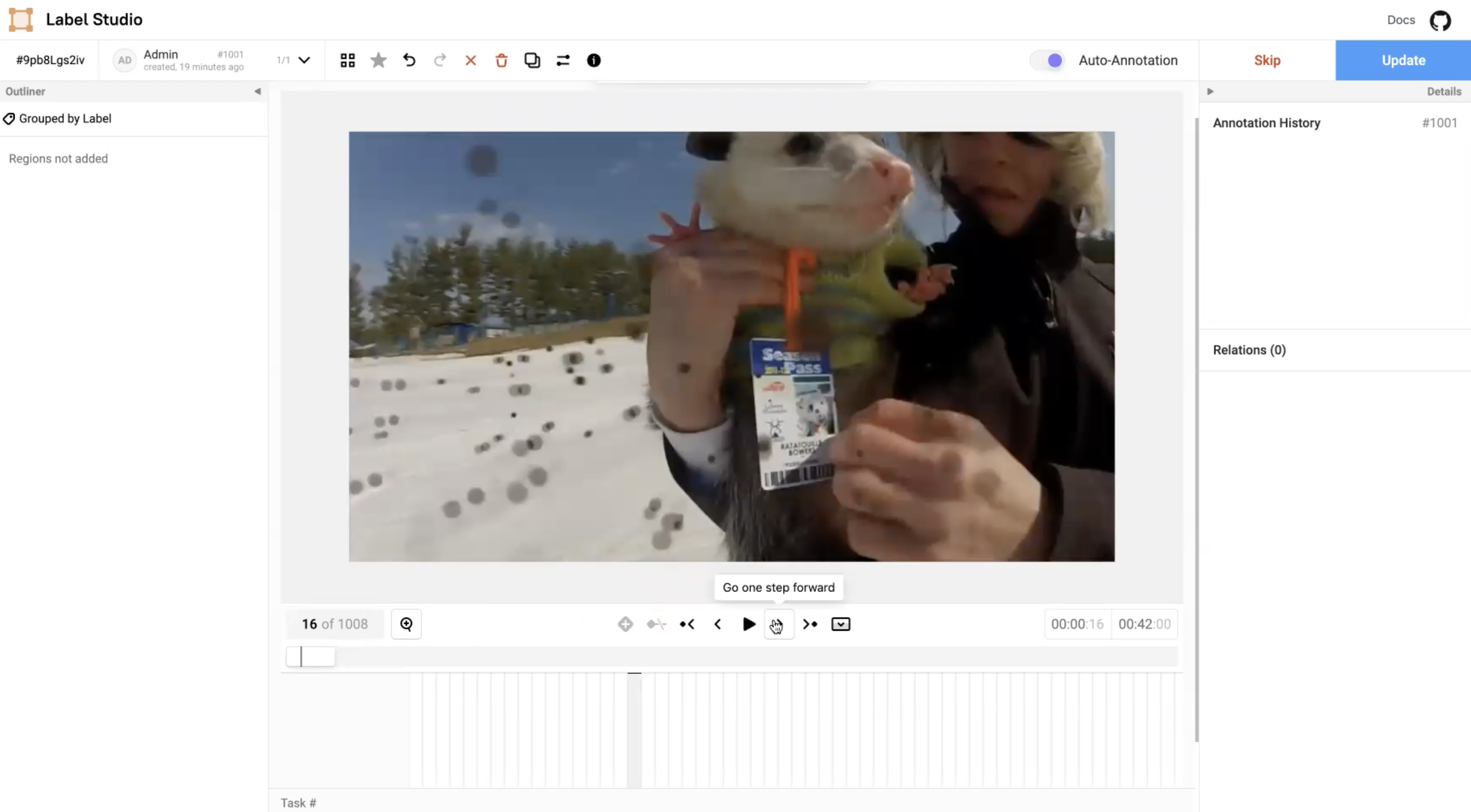 In the Label Studio UI, the video interface presents the main video canvas with controls that allows annotators to more precisely label blurry images using the following operations: